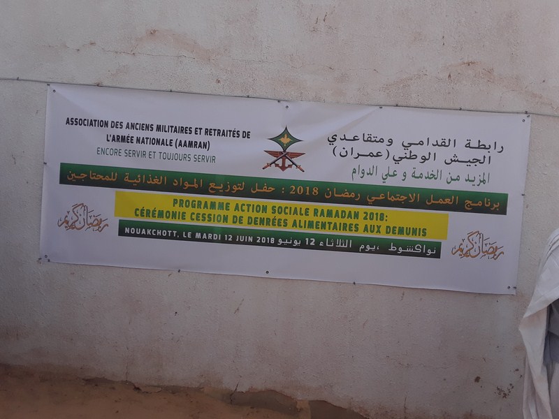 Comme à l'accoutumée en période de Ramadan, l'Association des Anciens Militaires et Retraités de l'Armée Nationale(AAMRAN) a procedé le mardi 12 juin 2018 à une remise de denrées au profit de familles necessiteuses.Au cours de cette cérémonie le president de l'association a pronocé un discours que vous trouverez ici en Français et en Arabe![]() |